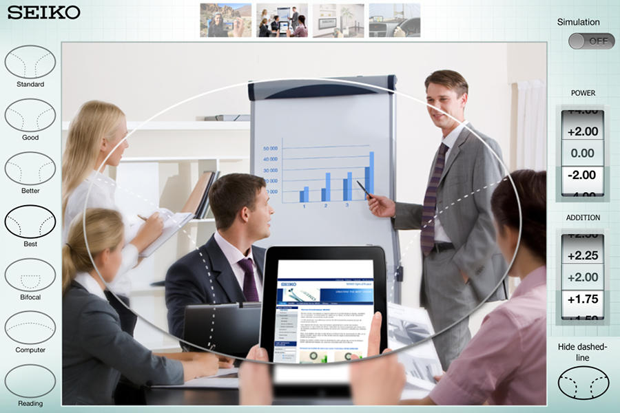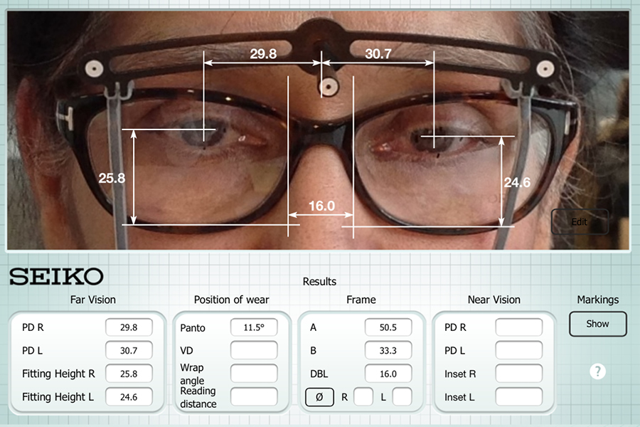 For a number of years, we have been using the SEIKO Digital Multitool to measure the lenses we prescribe. This iPad application gives us the ability to accurately measure your facial features in relation to your spectacle frames and it helps us select the best lens design for you. By placing a small apparatus on the spectacles while you wear, the iPad will take various measurements to provide the precise optical information to give you the best finish on your lenses.