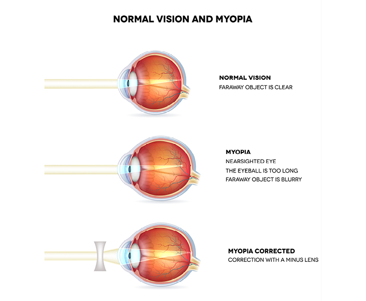 If the optical defect is very extreme, focusing on objects at any distance will be very difficult. To correct this defect, a concave lens will be required to re-align the optics of the eye and restoring vision.