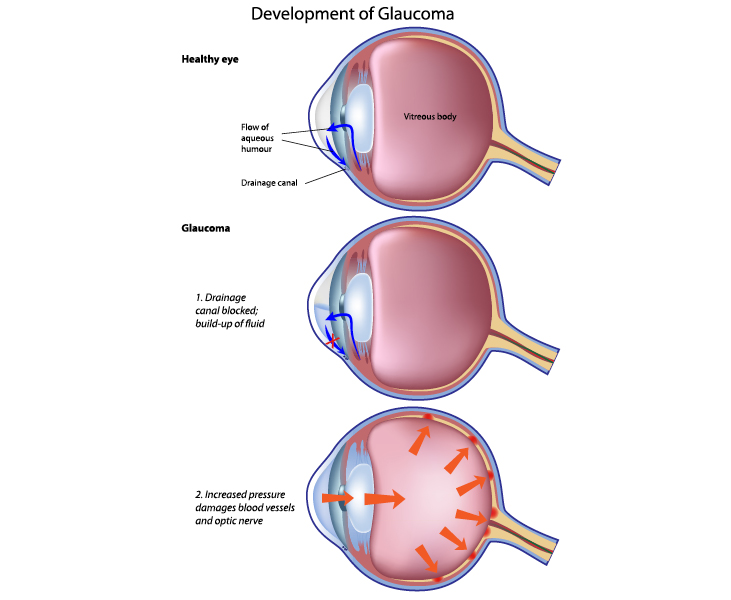 Glaucoma is a group of conditions where the optic nerve inside the eye is damaged, often associated with raised pressure inside the eye. There are different types of Glaucoma, and often will not cause any symptoms in the early stages.